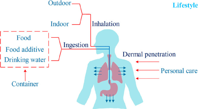 Figure 1: Diagram displaying how microplastics enter the human body through inhalation, ingestion and dermal penetration (Sun and Wang 2023).
