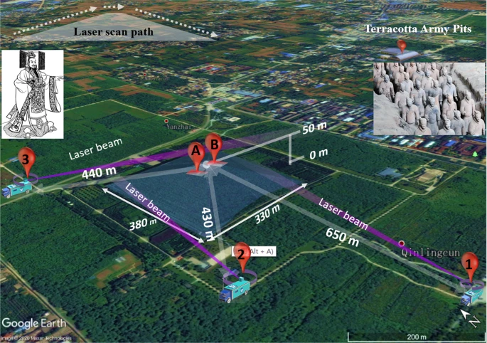 The earliest record of the mercury within Qin Shihuang’s tomb was found in the work of ancient historian Sima Qian, “Records of the Grand Historian”, which denotes rivers and seas of liquid mercury flowing inside (Sun 2017, 354). Mercury’s high vapour pressure at normal temperatures and its distinct atmospheric presence make it detectable with the right technology (Zhao et al. 2020). Using Differential Absorption LiDAR (DIAL), a remote sensing technique that utilizes laser pulses to measure atmospheric concentrations of specific gasses. This allowed measurement of mercury concentration without disrupting the tomb. Zhao et al. (2020) discovered two hotspots, marked by A and B in Figure 1. Its levels reached up to 27 ng/m3, significantly above regional amounts of 5-10 ng/m3. Modern scholars interpret historical accounts to imply around 100 tons of mercury sealed. Current findings corroborate a massive amount. Zhao et al. (2020) roughly estimated the amount of mercury escaped since, determining at least 1 ton. However, how feasible was this thousands of years ago?