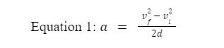 By applying fundamental kinematics (Equation 1) to this situation, we can calculate the stresses placed on neural fibres and determine the potential for neurocognitive impairment on the ball carrier (Barth, et al., 2001). Here, a is the acceleration, vf is the final velocity, vi is the initial velocity, and d is the distance travelled during deceleration.