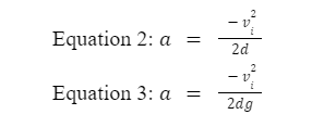 In this specific circumstance, the ball carrier comes to rest at the end of the impact (vf = 0), reducing Equation 1 into Equation 2. Dividing Equation 2 by acceleration due to gravity, g, produces Equation 3, acceleration as a multiple of g (Varney and Roberts, 1999).